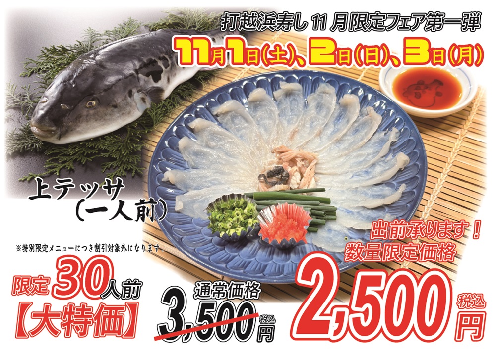 会席、寿司、天ぷら、ふぐ、うなぎなど